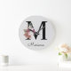 Monogram Pink Boho Girly Floral Initial M Große Wanduhr