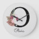 Monogram Pink Boho Girly Floral Initial O Große Wanduhr