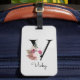 Monogram Pink Boho Girly Floral Initial V Gepäckanhänger