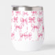 Pink Bow Coquette Ästhetische Mit Monogramm Thermalweintumbler für sie. Preppy und trendig. Personalisieren Sie es mit ihrem Anfang. Macht ein großartiges Geschenk für Brautjungfrau.