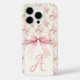 Monogram Pink Bow Coquette iPhone 16 Pro Case mit hübschem, in einem Monogramm geschriebenen Buchstaben und großem rosa Bogen und Vintagen Rose Wallpaper Muster.