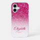Monogram Pink Glitzer Ombre Vorname Benutzerdefini iPhone 16 Hülle