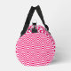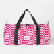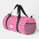 Monogram Shocking Pink White Wavy Stripes Psychedelic Hypnotic Small Duffle Bag. Die Tasche ist komplett überdruckt und hat eine rosa und weiße Wavy im SVG-Format. So wie das Meer oder ein kurviger Zickzack oder eine Zickzack Kunst: Ändern Sie den farbigen Hintergrund und die schwarzen Linien in verschiedene Farben. Sie können auch verschiedene Taschentypen aus der Pulldown-Liste auswählen. Wenn Sie den Pulldown verwenden, klicken Sie auf "Bearbeiten", um Karo zu erhalten, dass das Muster alle Ebenen abdeckt.