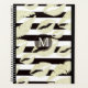 Der schöne und glamouröse Planer zeigt ein Muster von funkelnd Lippenbildern aus Leichtgold auf einem schwarz-weiß gestreiften Hintergrund. Ihr Monogramm ist in hellgoldener Mitte platziert auf einem schwarzen Kreis Banner, das auch in dünnem Gold ausgekleidet ist. Die Rückseite des Planers hat das gleiche Muster ohne Banner oder Monogramm.
