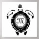 Die Silhouette der Meeresschildkröten ist von oben illustriert. Ein schwarzer Diamant überbrückt die Segmente und erzeugt so einen Rahmen für ein Monogramm. Das M ist für Monogramm kurz und kann für Ihren eigenen Initial personalisiert werden.