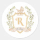 Dieser Baby-Ankündigung-Umschlag Aufkleber verfügt über ein Monogramm-Wappen mit einem Babywagen in neutralem Farbschema.