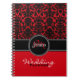 Monogram Red Schwarz-weiß Damask Wedding Planner Notizblock