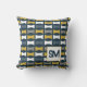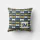 Monogram Retro Mid Century Geometric Navy, Mustard Kissen