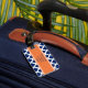 Monogram Royal Blue Quatrefoil Pattern mit Orange Gepäckanhänger