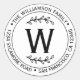 Elegante und einfache Familienname Monogram Rundkleber mit Rücksendeadresse und Adresse in stilvoller moderner Typografie auf weißem Hintergrund mit einer stilvollen Touch rustikalen Blattwerks. Fügen Sie einfach Ihre Daten zum Label hinzu. Exklusiv für Sie entworfen von Happy Dolphin Studio. Wenn Sie Hilfe oder passende Produkte benötigen, kontaktieren Sie uns bitte unter happydolphinstudio@outlook.com.