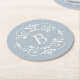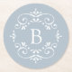 Ein eleganter Untersetzer für Stilunterhaltung, in französischer Blau und Weiß mit dem Monogramm. Passen Sie mit Ihrem Initial an. Sie können auch die blaue Hintergrundfarbe in die Farbe Ihrer Wahl ändern.