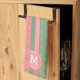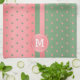 Monogram Sage Green and Coral Polka Dot Handtuch