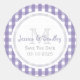 Hübscher lila und weißer Gingham Save the Date Stickers personalisiert mit dem Paarnamen und Monogramm. Sie sind nicht auf Hochzeitsaufkleber beschränkt, Sie sind willkommen, die Worte zu ändern und Ihre eigenen hinzuzufügen. Erstellen Sie ein Etikett für Ihre konservierten Waren, Geschenktasten oder jedes Produkt Ihrer Wahl.
