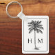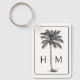 Dieser moderne, an der Küste inspirierte Schlüsselanhänger verfügt über eine schwarze Palmenpalme auf Weiß mit einem Monogramm, das Sie mit Ihren Initialen auf der Vorderseite und Kontaktinformationen auf der Rückseite personalisieren können.