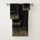 Monogram Script Black Gold Leopard Print Glitzer Badhandtuch Set