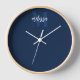 Monogram Script Calligraphy Navy Blue Clock Uhr