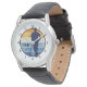 Uhr, Vintage Männeruhr mit schwarzem Lederarmband