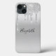 Personalisierter Silver Dripping Glitzer iPhone Gehäuse. Erhältlich in allen aktuellen iPhone Gehäusegrößen.