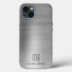 Monogram Silver Graue Brushed Metal iPhone 13 Case. Vollständig personalisieren Sie dieses elegante silbergraue Imitat gebürstete Metall Druck iPhone 13 Gehäuse mit Ihrem Monogramm und Namen.