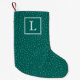 Stilvoll dekoriert mit diesem monogrammatischen Weihnachtsweih-Strumpf, mit winzigen Schneeflocken auf dunklem aquamarinem Hintergrund.