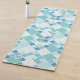 Eine Yogamatze mit spielerischem karierten Muster in türkisfarben und aquamarin mit cremefarbenen Farbtönen, mit individuellem Monogramm (optional).