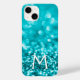 Monogram Turquoise Glitzer Case-Mate iPhone 14 Hülle