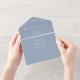 Zeitgenössisch, einfach, minimalistisch, qr Code, staubblau, modern, elegant Wedding All in One Invitation. Dreifache Kalligraphie, minimale, einfache, einzigartige, moderne Hochzeitseinladungen. Passen Sie Ihre Daten an. Bestellen Sie rechtzeitig, um eine Enttäuschung zu vermeiden.