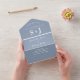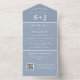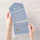 Zeitgenössischer, einfacher, qr-Code, staubblauer, moderner, eleganter Wedding All in One Invitation. Dreifache Kalligraphie, minimale, einfache, einzigartige, moderne Hochzeitseinladungen. Passen Sie Ihre Daten an. Bestellen Sie rechtzeitig, um eine Enttäuschung zu vermeiden.