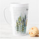 Die Mongram Watercolor Rustic Forest Mountain Cabin Latte Tasse mit einer Aquarellkabine in einem nebligen grünen Pinienwald. Geeignet für Naturliebhaber.