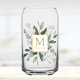 Introducing our Monogram Watercolor Tropical Green Leaves Can Glass. Featuring watercolor illustration of greenery bouquet arrangement with customizable monogram on the middle in gold color. Suitable as bridesmaid gift or as gift for nature lovers.