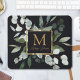 Monogram Watercolor Tropical Green Leaves Mousepad