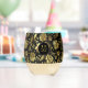 Elegantes goldfarbenes, Vintages, blumengemasertes Muster auf einem wechselbaren schwarzen Hintergrund. Maßgeschneiderte Goldmonogramm.