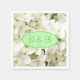 Die weiße Hydrangeas befüllen diese Papierserviette, die für Hochzeitsfeiern, Brautpartys und Partys geeignet ist. Behalt es einfach floral oder fügen Sie Monogramm und Daten. Durch die üppigen Blumen erstreckt sich ein grüner Bereich, um einen klaren, sauberen Text anzuzeigen. Das Grün, umrissen in einem dunkleren Frühlinggrün, kann in jede Farbe verwandelt werden, die Sie bevorzugen, um Ihren ausgewählten Farben zu entsprechen. Alles kann mit dem personalisierten Drehkreuz für Ihr individuelles Party bearbeitet werden. Oder ersetzen Sie einfach Ihre Informationen in den Platzhaltern. Dein Party, dein Weg.