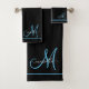 Monogram White Initial Blue Script Name Badhandtuch Set
