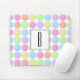 Dieses Mauspad weist ein pastellfarbenes Regenbogenpolka-Punktmuster mit einem Monogramm in der Mitte auf, das personalisiert werden kann.