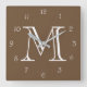 Monogram White Script Numbers On Brown wccn Quadratische Wanduhr