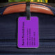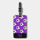Gepäckmarke mit schwarz-weißen Fußballbälle, Monogramm-Initial/Name und Adressinformationen auf lila Hintergrund. Personalisieren Sie Ihre Monogramm-Initial(en)/Name, Name und Adressinformationen mithilfe der einfachen Vorlagen. Schriftart, Schriftart, Schriftart und lila Hintergrundfarbe können individuell angepasst werden. Ideal für Sportler.