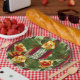 Dieser magnolische Kranz fällt vor einem schönen, weihnachtlich gestreiften Hintergrund auf. Passen Sie Ihren eigenen Initial- oder Familiennamen an, um Ihren Urlaub mit einer klassischen Touch zu unterhalten. Dieses Muster ist auch auf größeren Servietten und Handtüchern erhältlich.