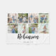 Familienname Skript-Schriftart mit 8 Foto-Slots für Familienmitglieder und einer benutzerdefinierten Nachricht für ein besonderes Geschenk.
