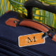 Gepäckanhänger in Orange. Abstrakte Kunst im Hintergrund. Bearbeiten Sie den Initial und den Namen, um ihn personalisiert zu machen. Geschenkidee.