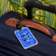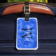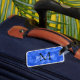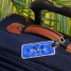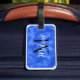 Benutzerdefinierte Gepäckanhänger in blau. Abstrakte Kunst im Hintergrund. Bearbeiten Sie den Initial und den Namen, um ihn personalisiert zu machen. Geschenkidee.