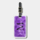 Gepäckanhänger lila. Abstrakte Kunst im Hintergrund. Bearbeiten Sie den Initial und den Namen, um ihn personalisiert zu machen. Geschenkidee.
