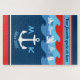 Machen Sie Ihren eigenen Seeentwurf mit diesem weißen Anker und Monogramm mit Silhouetten der verschiedenen Arten von Watercraft, über Wellen Hintergrund, in den klassischen Seetönen oder Rot, Weiß und Blau. Ersetzen Sie das Beispielmonogramm und -text durch Ihre Selbst für ein personalisiertes Geschenk. Vervollkommnen Sie für alle Marine-bedingten oder Sommerereignisse, aber wird auch das Jahr rund bearbeiten! Groß für jedermann mit Interesse an allen Sachen nautisch.