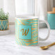 Die Coffee Tasse ist das ideale Geschenk für eine stilvolle Frau. Sie zeichnet sich durch ein aquamarines und goldenes Design aus, das Ihren mit Monogramm Ersteinstieg ermöglicht. Trendy und chic, personalisieren Sie Ihre noch heute! Design: https://www.etsy.com/shop/OriginsDigitalCurio