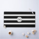 Elegantes Monogramm auf gestreifter, schwarz-weißer Schreibtischmatte. Elegantes modernes Design.