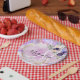 Monogramm aus Lila, rosa und goldfarbenem Rainbow- Pappteller