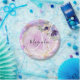 Teller aus weißem und elegantem Papier mit lila Marmor-Regenbogen und Wirbel, vergoldetem Blumenrahmen mit blauen und pfirsichfarbenen Blume und rosa Hintergrund. Individuelle Name und Monogramm sind in einem handgeschriebenen Schriftsatz geschrieben. Sie können die Textfarbe, den Schriftart und die Schriftgröße mit der Option Anpassen ändern.