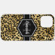 Chic gold und schwarz leopard Druck iPhone 12 pro max Gehäuse mit einem individuelle Name und Monogramm Vorlage. Ein niedlicher und trendiger Safari-Tiermuster-Hintergrund, der mit einem eigenen Stück Personalisierung überragt wird.