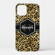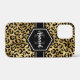 Chic gold und schwarz leopard Druck iPhone 12 Mini-Gehäuse mit einem individuelle Name und Monogramm Vorlage. Ein niedlicher und trendiger Safari-Tiermuster-Hintergrund, der mit einem eigenen Stück Personalisierung überragt wird.