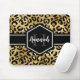 Chic gold und schwarz leopard Mousepad mit individuelle Name und Monogramm Vorlage. Ein niedlicher und trendiger Safari-Tiermuster-Hintergrund, der mit einem eigenen Stück Personalisierung überragt wird.